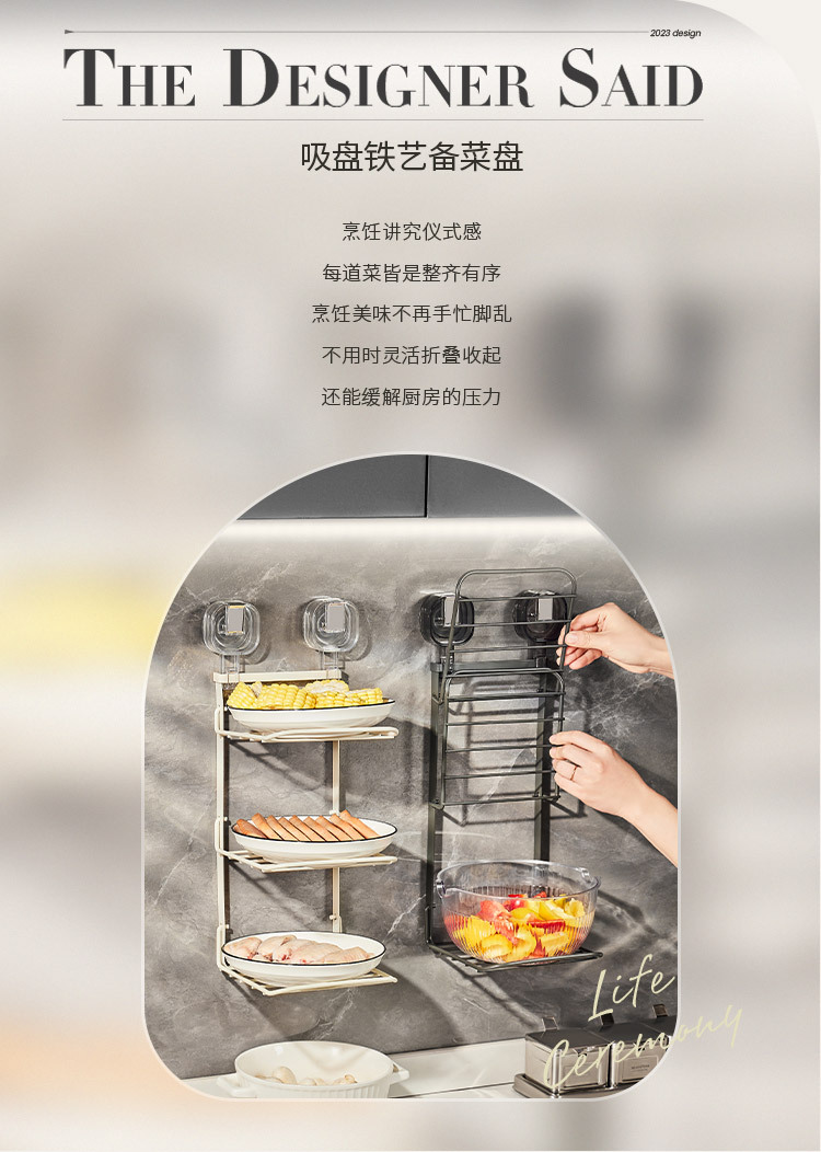 Prato lateral dobrável de parede multicamadas, artefato multifuncional doméstico de preparação de alimentos
